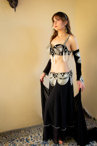 This costume was hand-made in Egypt for Turquoise International. All measurements are the largest possible size and can be adjusted to fit a slightly smaller size. Bra: 36.6 B+ Hips:...