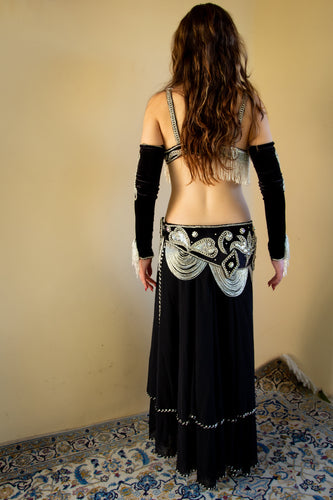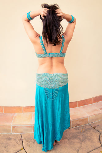This costume was hand-made in Egypt for Turquoise International. All measurements are the largest possible size and can be adjusted to fit a slightly smaller size. Bra: 33.5 B Belt:...