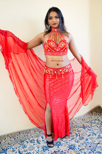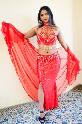 Our NEW Wafaa collection is an elegant Cairo line with glamorous designs and stunning bling. These costumes make a red carpet statement. Great for stage as well as up-close. We have some designs in multiple that would work beautifully for dance troupes. NEW costumes being added regularly to this incredible new line!