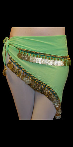 This classic hip scarf design highlights coins and a smooth design on richly-dyed chiffon. We use only high-quality materials for all of our sashes. Trimmed with one row of jewel beads &...