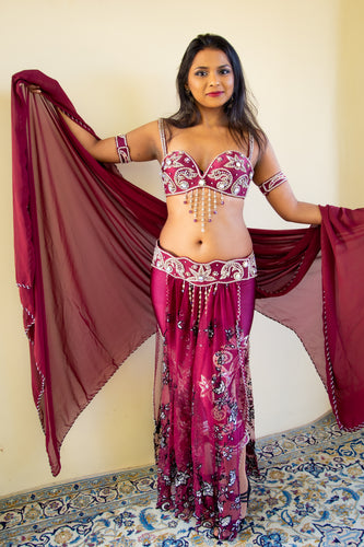 Our NEW Wafaa collection is an elegant Cairo line with glamorous designs and stunning bling. These costumes make a red carpet statement. Great for stage as well as up-close. We have some designs in multiple that would work beautifully for dance troupes. NEW costumes being added regularly to this incredible new line!