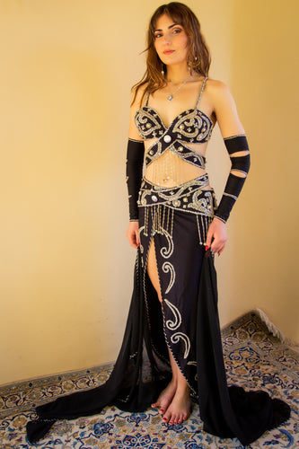 Our NEW Wafaa collection is an elegant Cairo line with glamorous designs and stunning bling. These costumes make a red carpet statement. Great for stage as well as up-close. We have some designs in multiple that would work beautifully for dance troupes. NEW costumes being added regularly to this incredible new line!